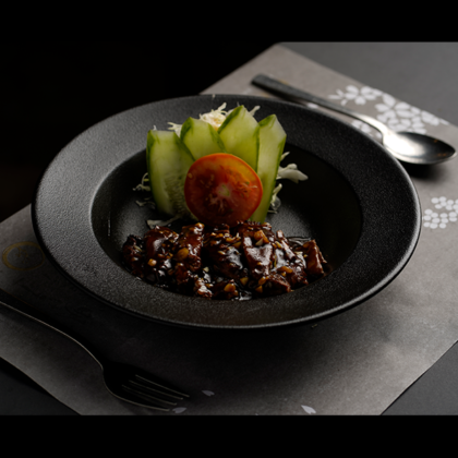 Grilled prime beef, saut?ed garlic with wasabi & soya dressing