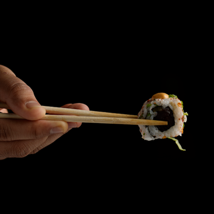 Stuffed tuna maki, tuna, cucumber, spicy mayo, chilli flakes